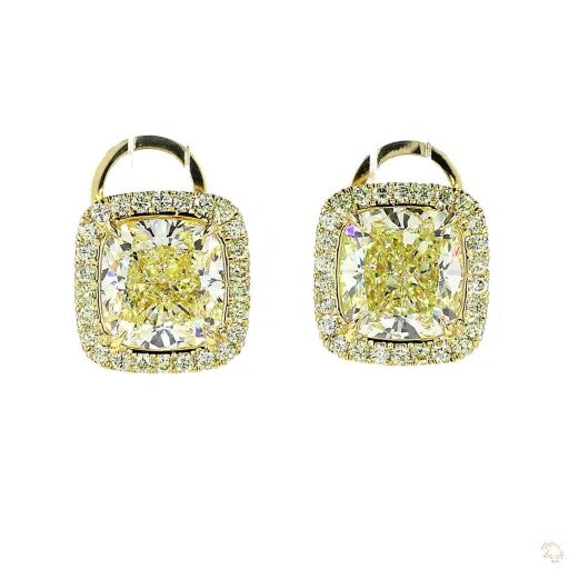 Cushion Cut Yellow Diamonds Halo Stud Earrings (3 ct per diamond)